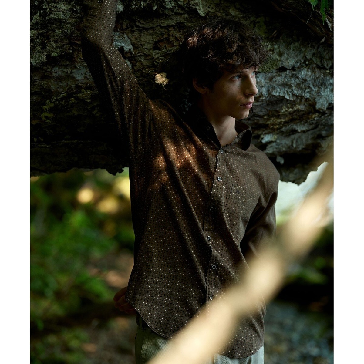 森林破壊に繋がらない「持続可能な木材」を原料の再生繊維セルロース(リヨセル)を使用。植林・育林活動へのドネーションを通じ、二酸化炭素削減の取り組みを進める新たな環境配慮型素材です。程よい光沢感と、なめらかなドレープ性が特徴的な素材です。スカーフで見られるような配色でレトロな印象の小紋柄プリントシャツはスタイリングのアクセントになるアイテムです。また、初秋から羽織としても使える汎用性の高いアイテムです。