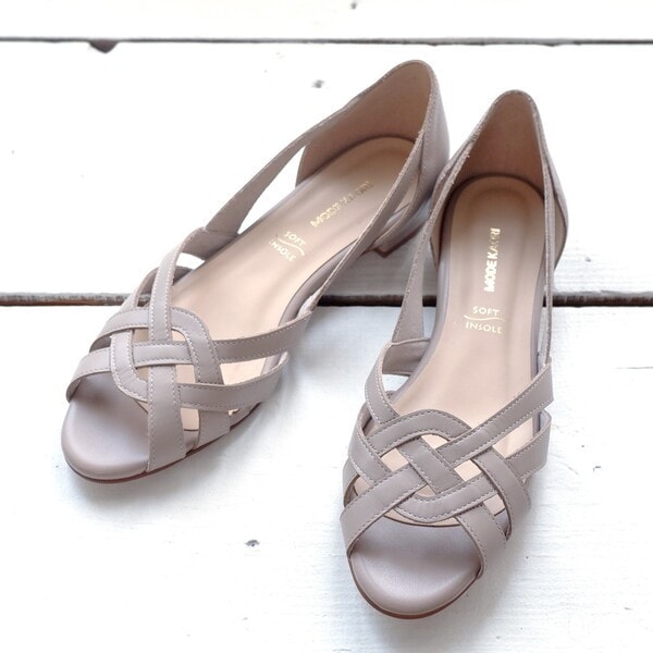 ブラウン メッシュフラットシューズ