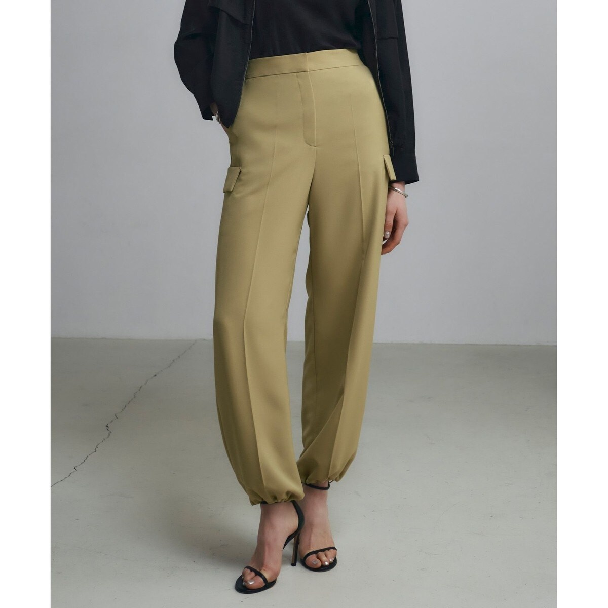 ■デザインウエストベルトのフロントはスッキリ、後ろベルトがゴム仕様のイージーな感覚で履いて頂けるワイドストレートカーゴパンツです。裾部分はドローストリング仕様で、スタイリングに合わせて変化が可能な2WAY仕様です。トップスを選ばず幅広いシーンで活躍する汎用性の高いアイテムです。