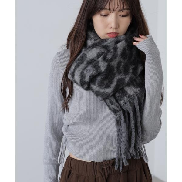 ヒョウ柄がアクセントになる大判ストール。ほどよい厚みとふんわりとした肌触りの良い素材を使用しており、防寒対策にぴったりです。大判タイプは首元でぐるぐる巻くだけでなく、肩からショールのように羽織るのもおすすめ。デイリーからキレイめONスタイルまで幅広いシーンに活躍します。※モデルの着用画像の場合、光の当たり具合により、実際の色味と異なって見えることがございます。色味は、商品単体の画像をご参照ください。
