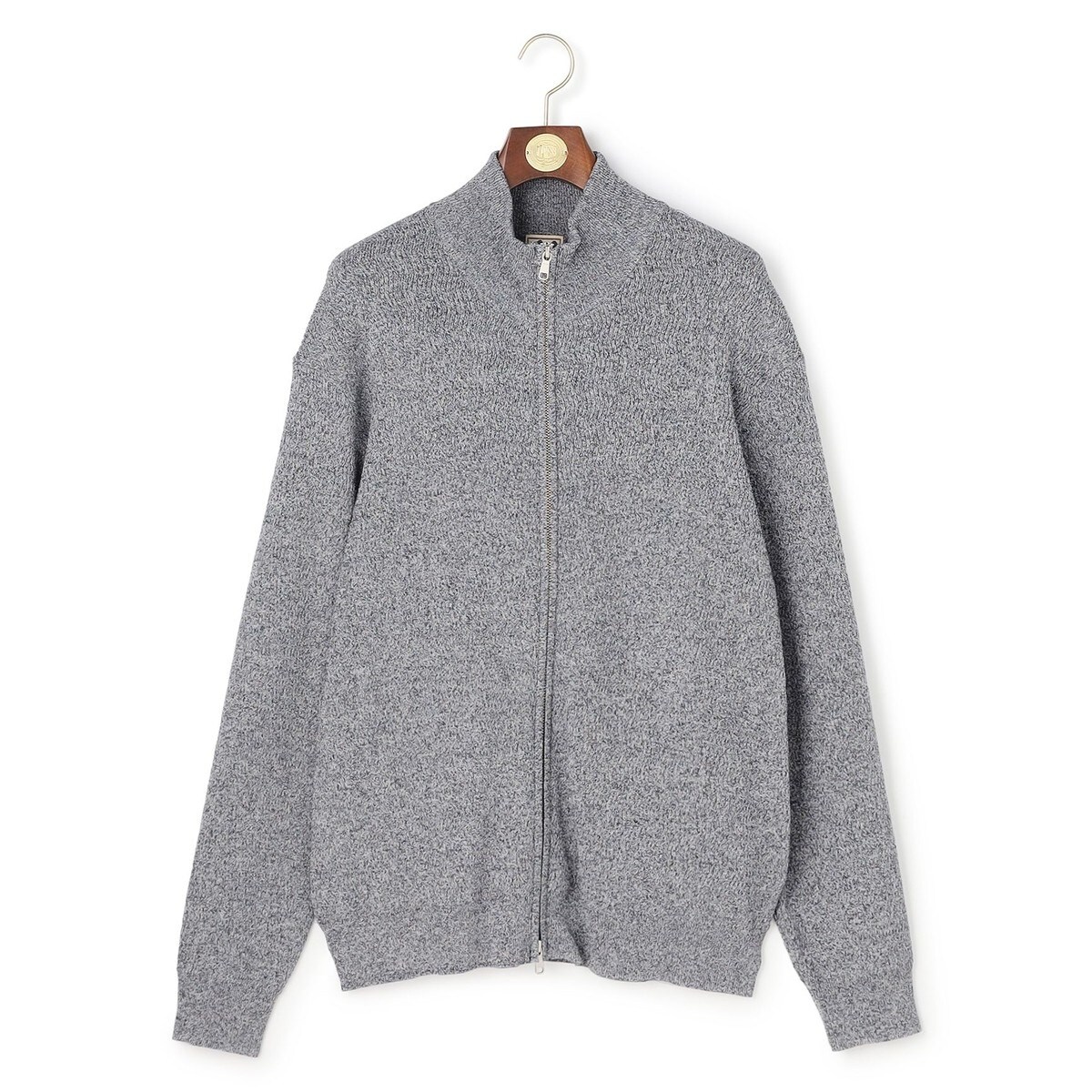 ■素材綿100%の糸を使用。擬麻加工という特殊な樹脂で糸をコーティングし、麻に似せた雰囲気にする加工を施しています。加工された糸の風合がまるで麻糸のようにドライタッチになることが特徴です。また、濃淡の2色の糸を撚糸して、コントラストのあるユニークな糸で編立ています。全体を細かいカノコ柄で編立ていますので、素材特性も相まって清涼感のある着心地に仕上がっています。