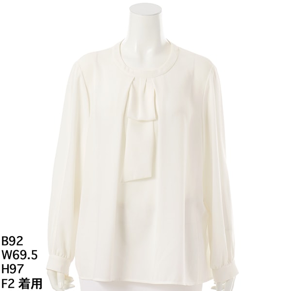 【低身長サイズ】【洗える】ボウタイ風ブラウス