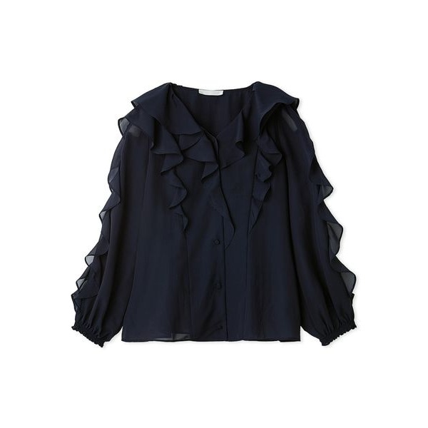 VIS 【洗える】2WAYラッフルカラーロングスリーブブラウス