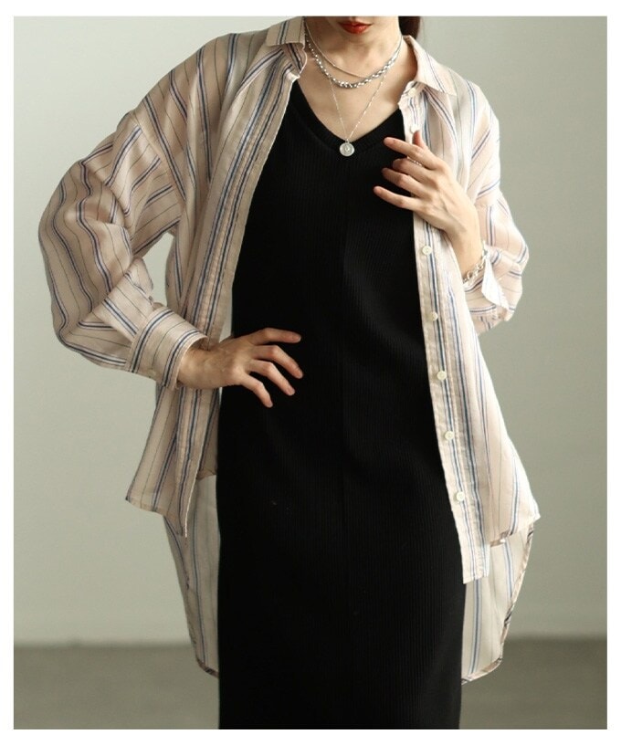 コード刺繍メッシュチュニックカーデ