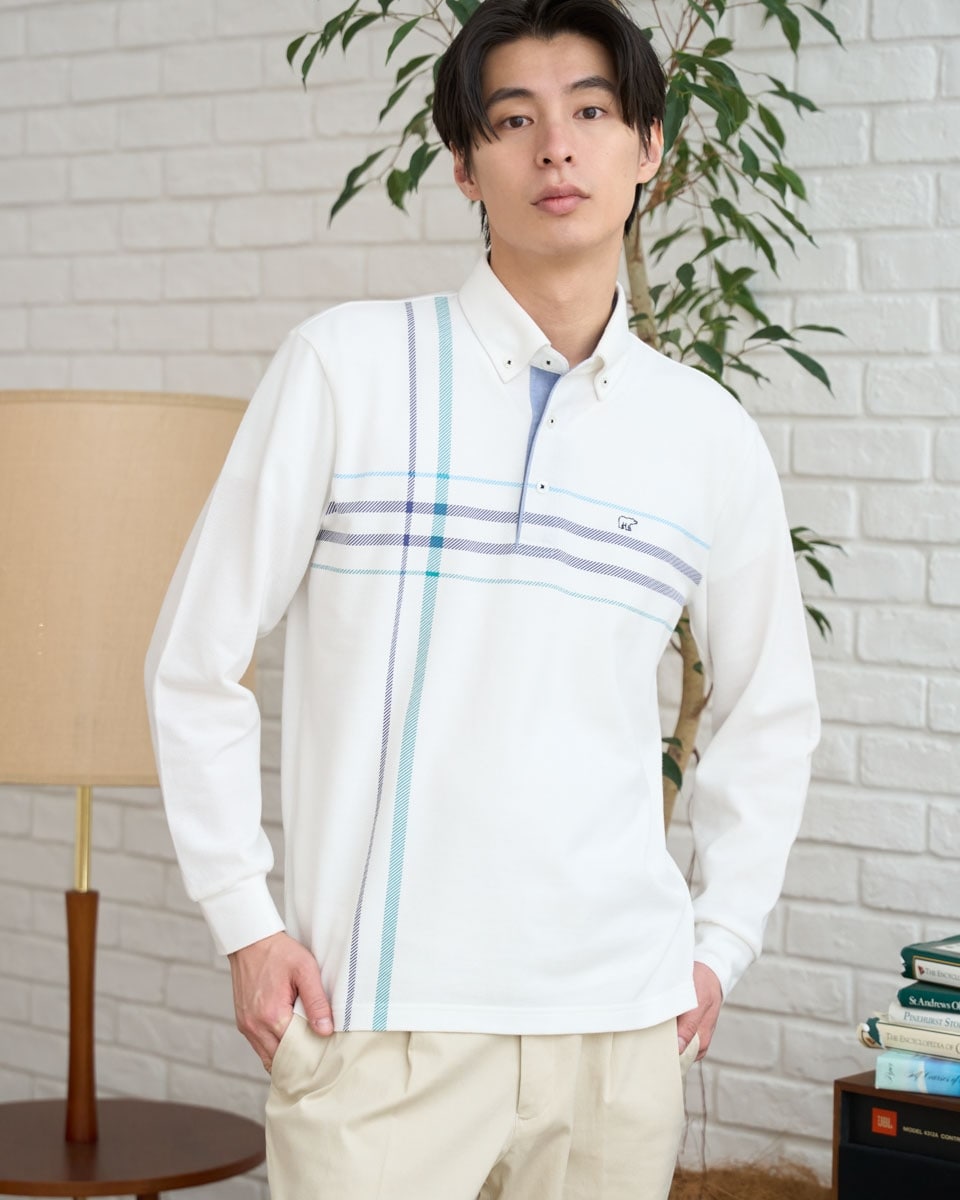 WudgeBoy ワッジボーイ 長袖ポロシャツ プルオーバー メンズ Lサイズ チェック柄 グリーンXホワイト ビッグサイズ オーバーサイズ
