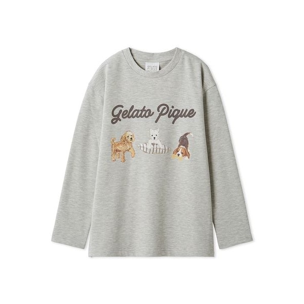 ビーグルにラブラドゥードル、ウェスティ。おうちの中で楽しく遊ぶワンちゃんたちの姿をテーマにした、UNISEXでお楽しみいただけるシリーズです。3頭の表情豊かなワンちゃんをプリントしたインレイ素材のロングTシャツ。性別を問わず、ゆったりと着用いただけるサイズ感で仕上げました。色はオフホワイトとグレーの2色展開。同シリーズのDOG柄ハーフパンツ、ロングパンツやジャガードカーディガンとコーディネートしたり、カップルでペア・コーディネートもおすすめです。