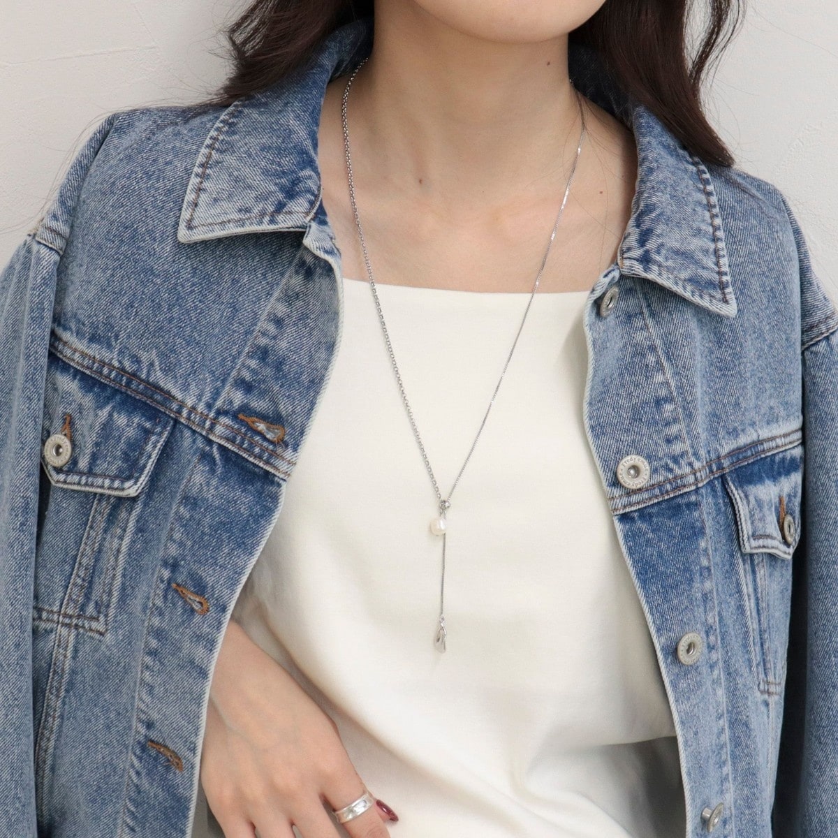 ・華奢なチェーンとパールの組み合わせが上品な華やかさをプラス