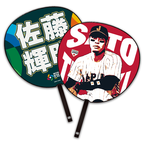 うちわの表面には迫力満点の選手イラストを配し、裏面には選手の名前を大きくデザインしました。