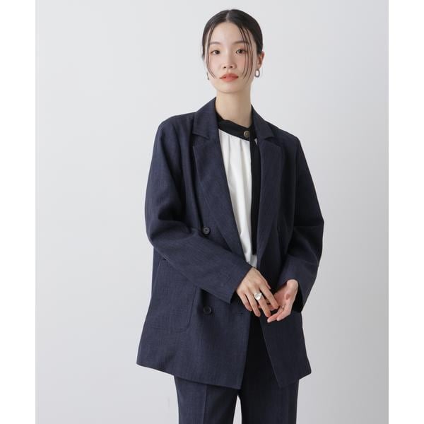 ネイビー Vネック ノーカラージャケット