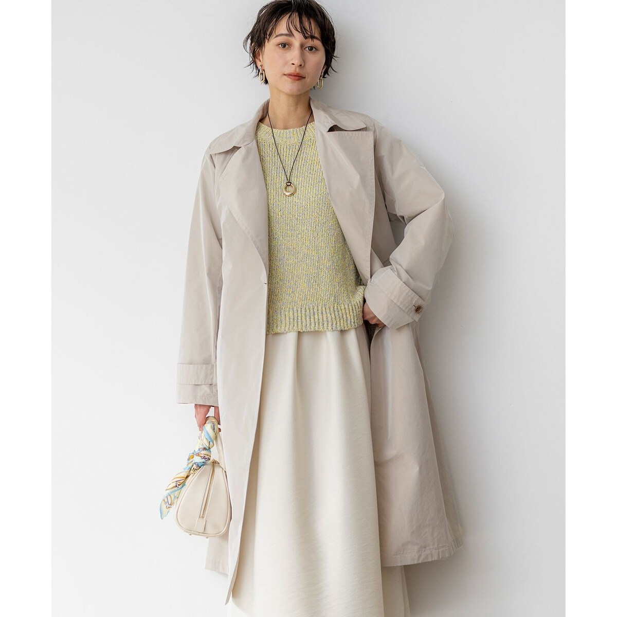 昨年も好評だったイタリアLIMONTA社のメモリータフタを使ったライトアウターを、今年はライナー付きにアップデート。トレンチコートからインスピレーションを得たデザインはそのままに、サイズ感にゆとりを出し、シルエットもアップデートしています。ライナーを付けることでまだ肌寒い春先にも、寒くなりだす秋にも、長いシーズンで活躍できるアウターになりました。カーディガンとマリンパンツのスタイリングに羽織っていただき、アクセントでスカーフを足していただくのもお勧めです。カラーは、正統派で上品なベージュ(#033)、軽やかなニュアンスブラウン(#030)、モダンで都会的なグレー(#004)の3色展開です。