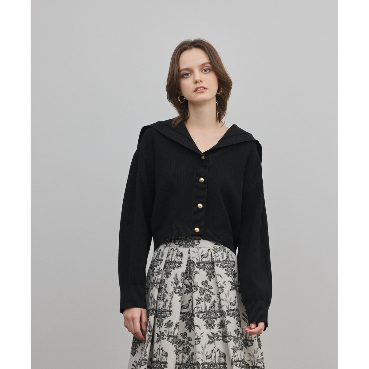 トップス ニットカーディガン 襟 セーラー ネイビー shein s