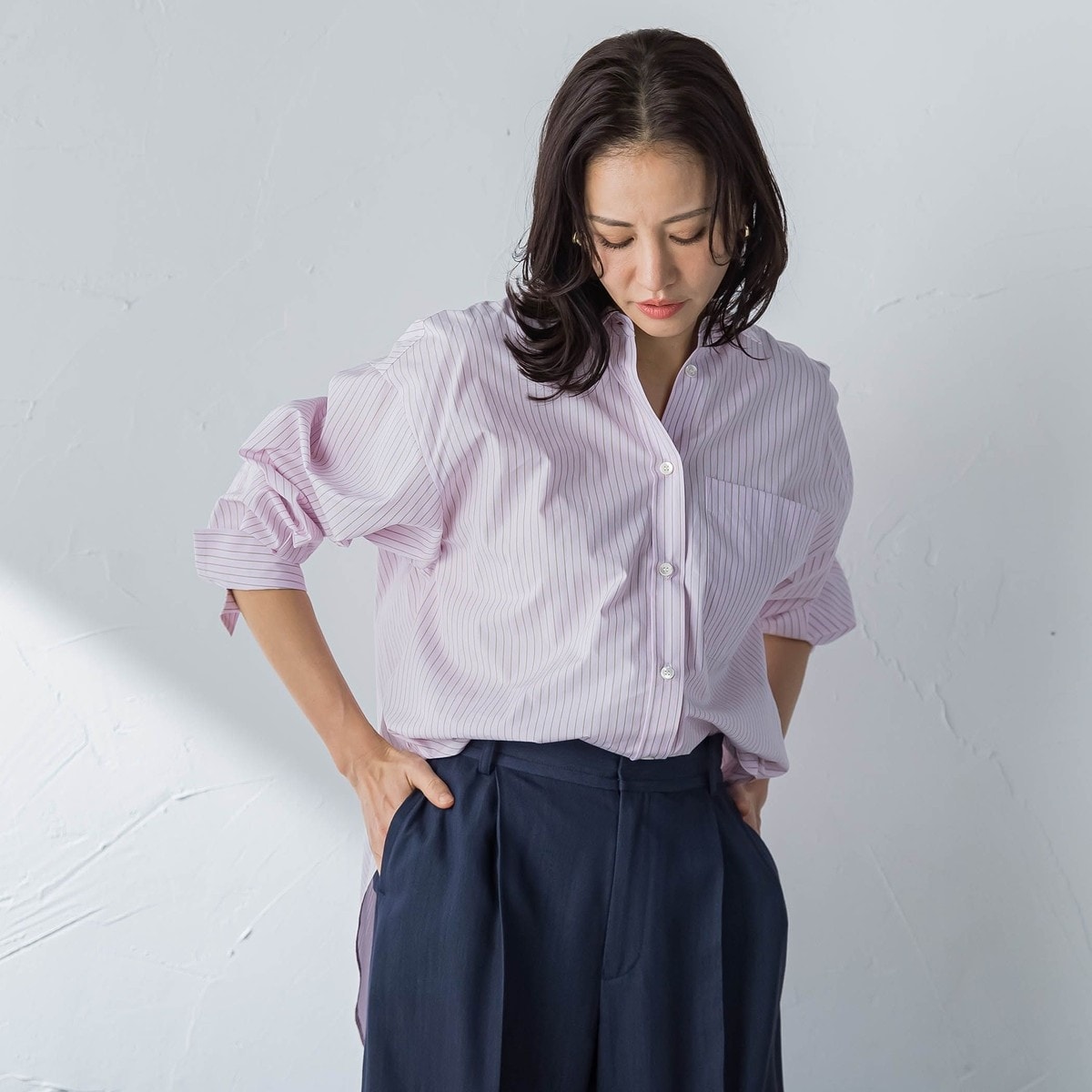 コットンポプリン オーバーサイズストライプシャツ