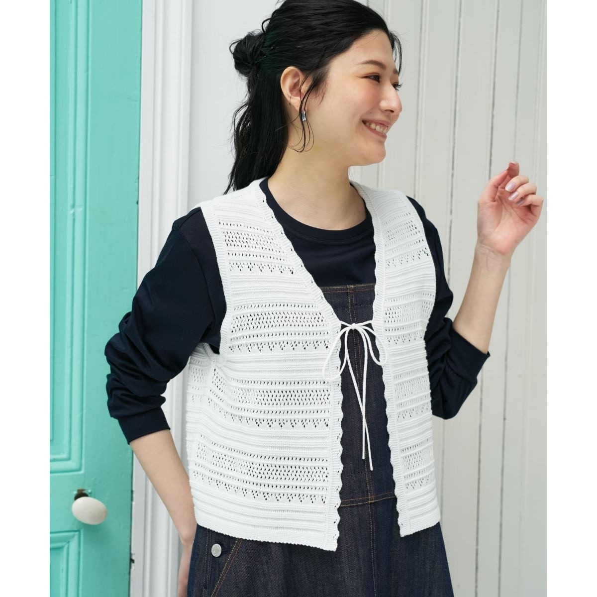 フロントのリボンを結べば女性らしいシルエットに、開けて羽織れば軽やかな印象でお楽しみいただけます。