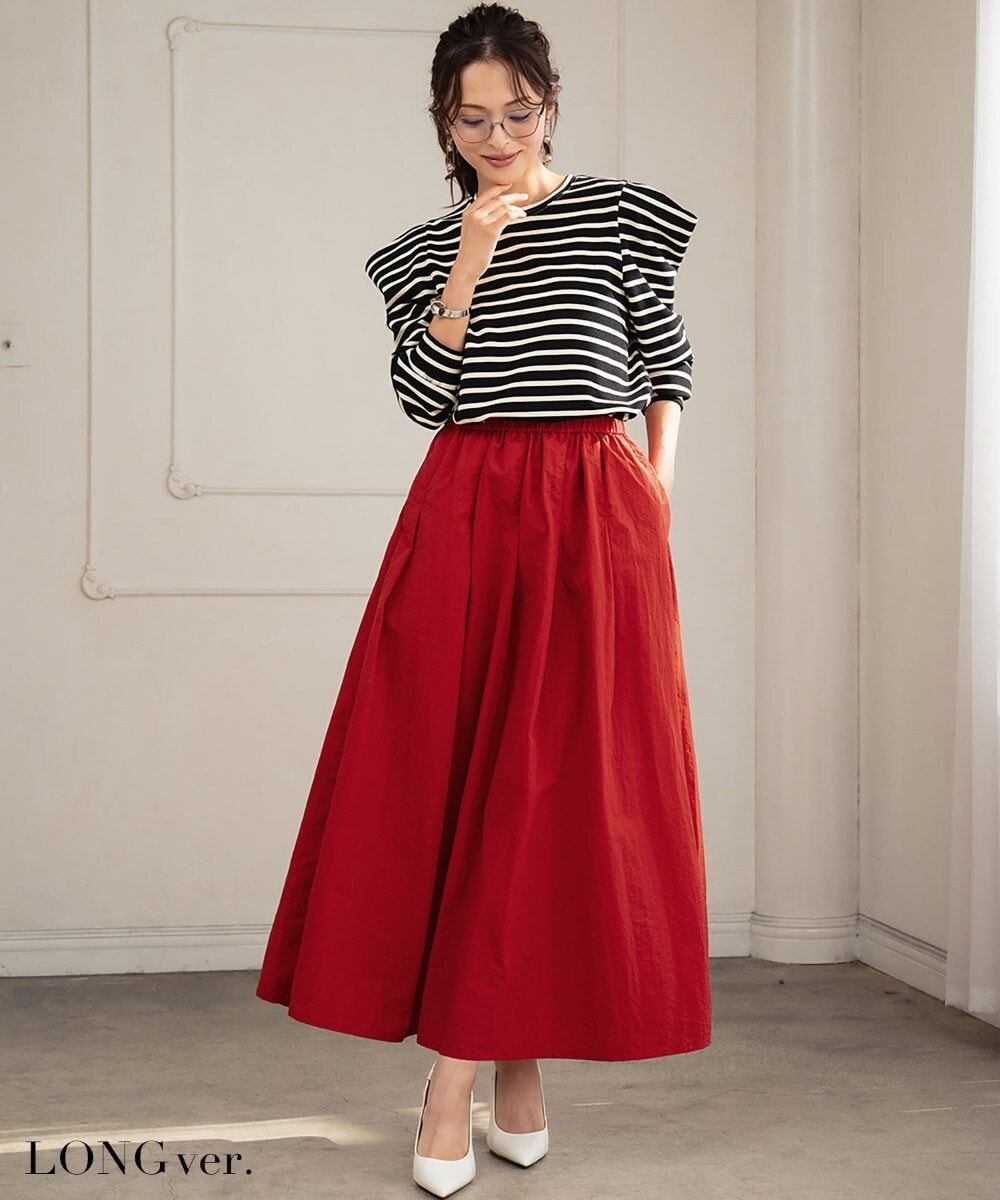 ピンク フレアロングスカート ゴムウエスト♥︎ タフタスカート