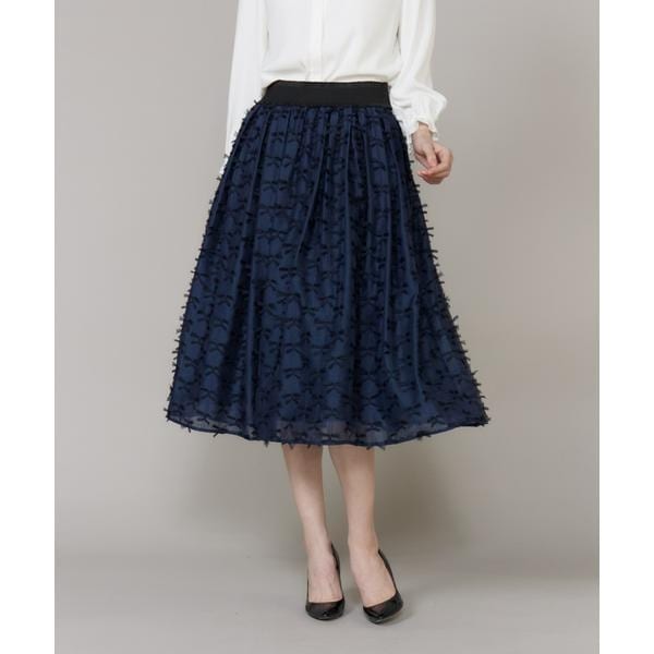 ■デザイン上品な透け感と、繊細なチュールリボン刺繍が目を惹くタックギャザースカート。ネイビーカラーの軽やかな素材が動きに合わせてふんわりと揺れ、女性らしい華やかさを引き立てます。ウエストには、イタリア製の特別な高級フリルゴムを採用し、快適なフィット感と美しいシルエットを両立。デイリーはもちろん、デートやお食事会、オケージョンにも活躍する一枚です。高見えするデザインで、コーディネート全体を一段とエレガントに仕上げてくれる、ワードローブに加えたい価値あるアイテムです。■素材80スパンのポリエステルを使用した、こだわりの刺繍素材です。ナチュラルな風合いのマットなポリエステル生地をベースに、リボン状に加工したチュール糸を丁寧に刺繍。薄手ながらも、ほどよい可愛らしさと繊細な表情を持つ仕上がりになっています。・裏地あり・ウエストゴム仕様・ポケットあり・左サイドファスナーあり■サンプル撮影商品画像の商品はサンプルです。実際の商品とはサイズや色味、素材、デザイン等の仕様が若干変更になる場合がございます。■カラーについては、可能な限り実際の商品に近いカラーにて撮影をおこなっておりますが、照明の関係により実際の製品とは色味が違って見える場合があります。またパソコン・スマートフォンなどの環境により、若干製品と画像のカラーが異なる場合もございます。現物と画像のカラー差異については返品理由となりませんので、予めご了承ください。■サイズ表記はあくまで目安となります。