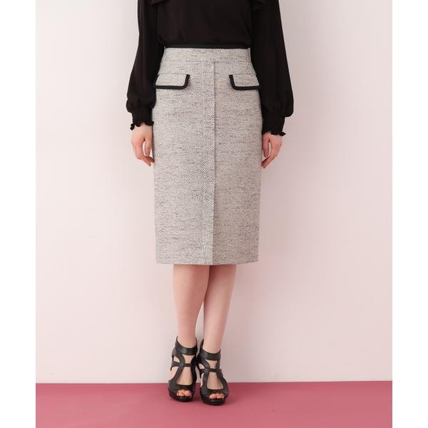 ピンキーアンドダイアンミックスツイードパイピングスカート 38 ブルー