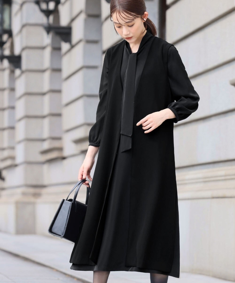 Lurco 【自宅で洗える】夏用ワンピース ブラックフォーマル ロング丈 前開き