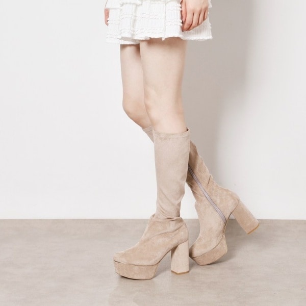 シューズ 布・キャンバス / 無地 / 25.0cm以上あり / 22.0cm以下あり / 7.5cm以上 / 太めヒール / ふつう(D・E・2E) / ラウンドトゥ / ロング(筒丈35cm以上) / ライフスタイル / カジュアル / 柔らかいソール / ゴム底/合成底
