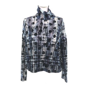 極美品★Y's ワイズ YM-T20-676 ハウンドトゥース ドットチュール ハイネック カットソー ネイビー ブラック 2 日本製 正規品 レディース【中古】