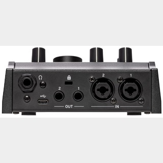 IN 1、2端子(XLR / 6.3mmTRSモノラルフォーンジャック)、OUT 1、2端子(6.3mmTRSモノラルフォーンジャック)、(USB)端子(Type -C)、 (ヘッドホン)端子(6.3mmステレオフォーンジャック)