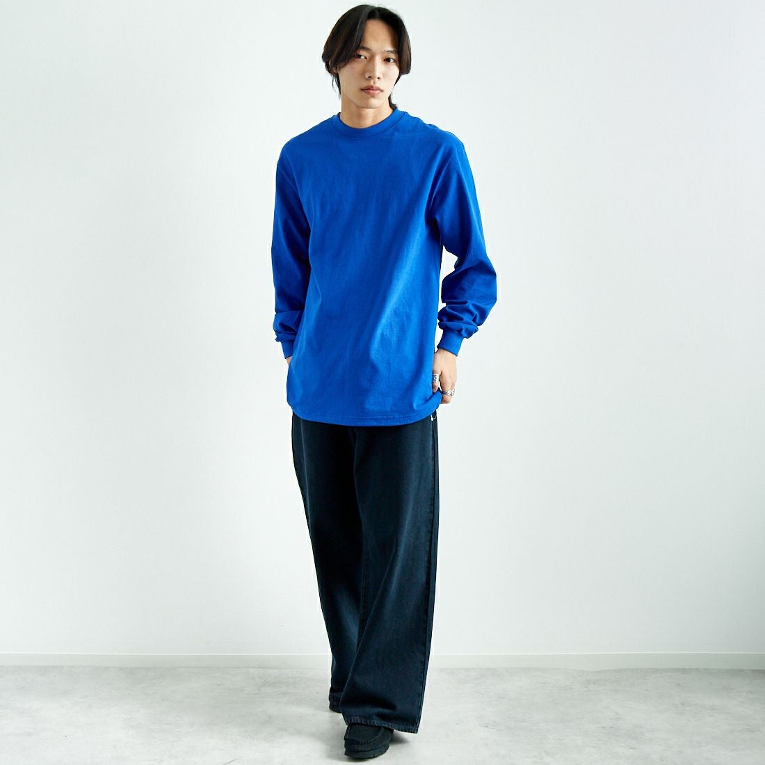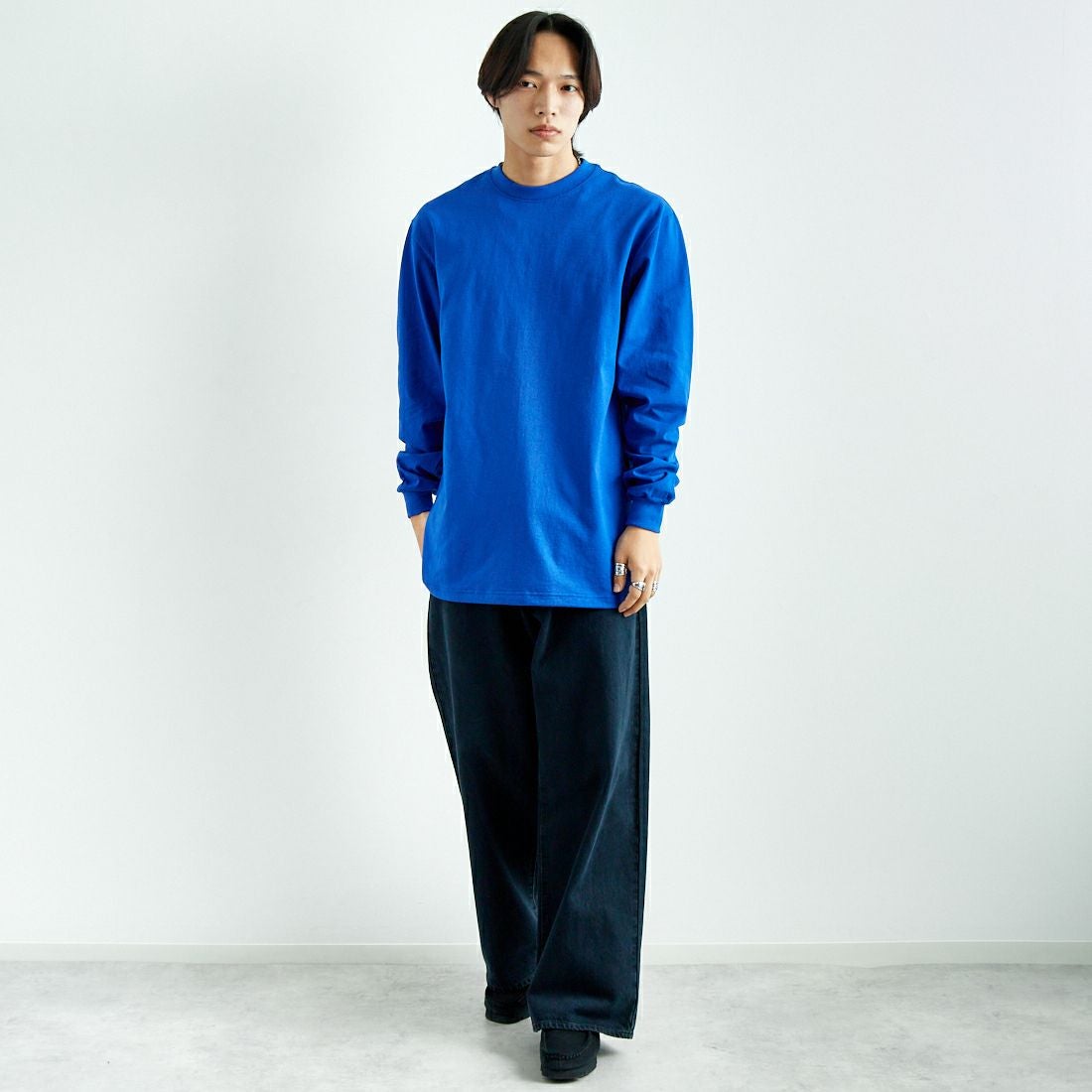 SHAKA WeAR[シャカウェア]の別注 ドローコードロングスリーブTシャツ。定番の肉厚ロングスリーブTシャツをドローコード仕様にカスタム。ざらつき感のあるUSコットン100%生地を使用。首回りのリブ、厚みのあるボディはしっかりとした作りで、繰り返しの洗濯やハードワークに耐えうるタフな一着です。裾のドローコードを絞ってシルエットをアレンジするのもおすすめです。
