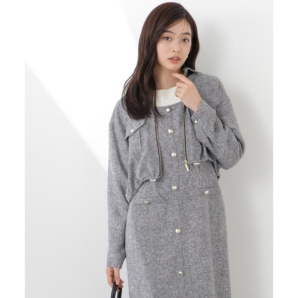 薄手で柔らかいスプリングツイード素材を使用したブルゾン。人気の短丈アウターで、ワンピースやパンツスタイルまで合わせやすく、幅広いスタイリングに活躍します。裾はドロスト仕様でシルエット調節が可能。同素材のジャンスカとのセットアップもおすすめです。