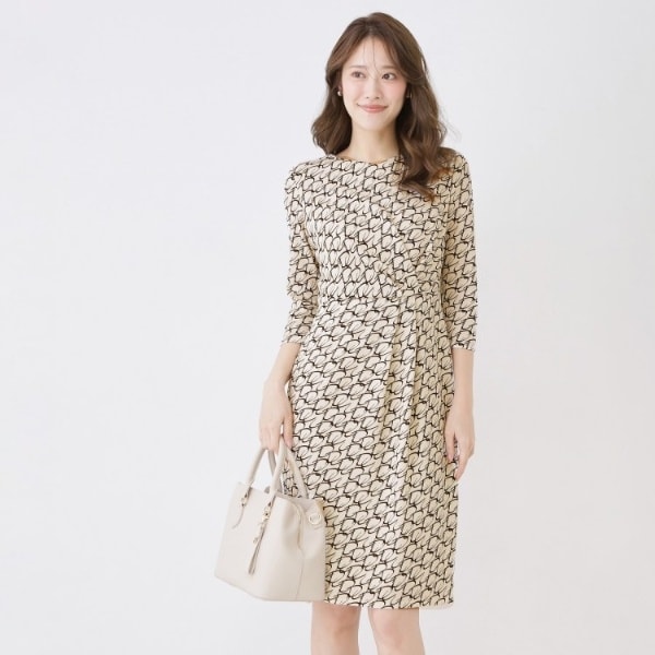 【手洗い可/日本製】幾何柄エレガントワンピース