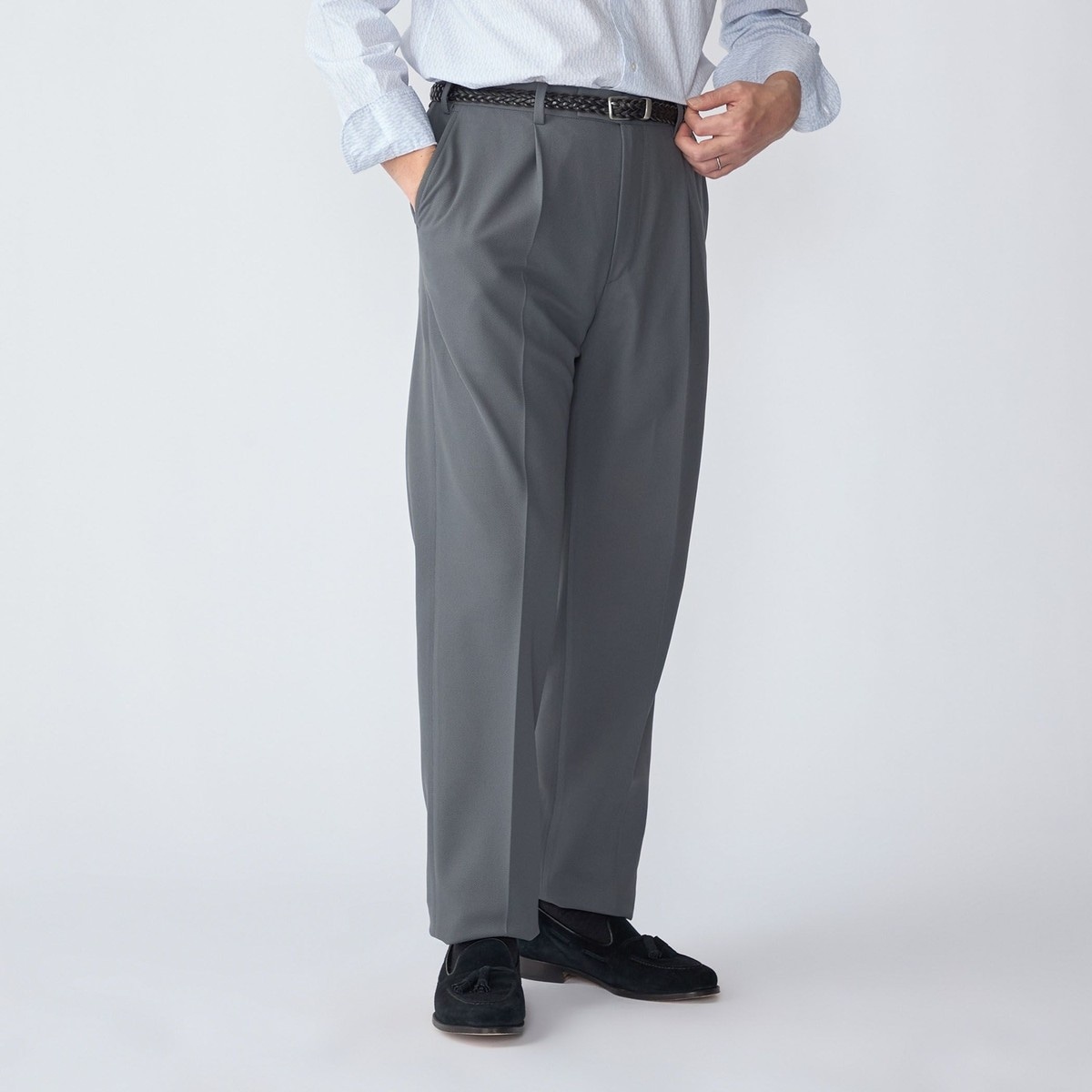 1プリーツの正統派スラックスを踏襲したディテール。