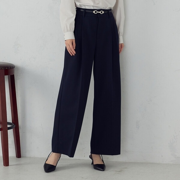 潔いワイドシルエットにセンタープリーツを施した、上品さのあるワイドパンツ。
