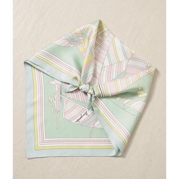 マンテロ社に別注した、ヨットモチーフをボーダー状に重ねた、爽やかなマリンムード漂うスカーフ。主張しすぎないモチーフデザインで、シンプルな装いにも自然に馴染みます。首元にはもちろん、バッグに巻いてアクセント使いもできる汎用性の高いミディアムサイズ。春夏らしい淡い配色のライトグリーン、コントラストが効いたネイビーの2色展開。
