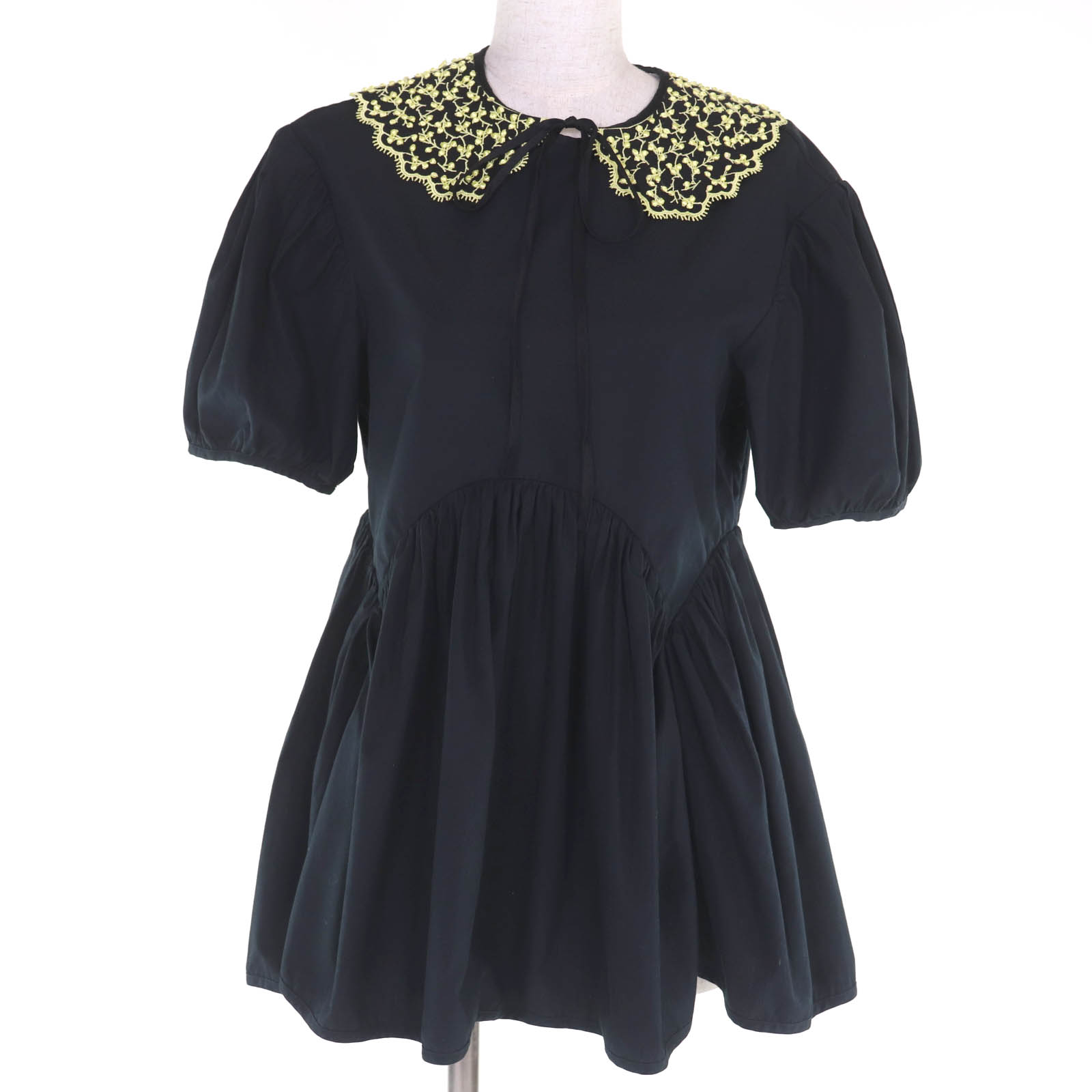 極美品△CECILIE BAHNSEN セシリーバンセン ESS-0005 クロスデザイン ロングスリーブ ボリューム ワンピース チュニック ブラック XS レディース オススメ◎【中古】