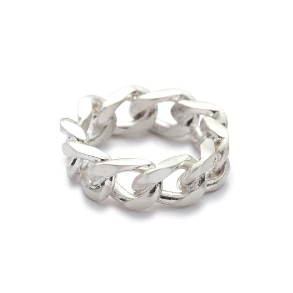 カット入りのキヘイチェーンを型どった8mm幅のリング。