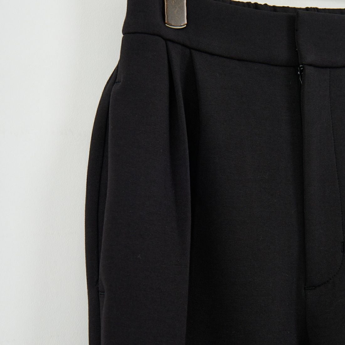 スウェットのようなリラックス感と、スラックスのような上品さを兼ね備えた一本。程よい膨らみとボリュームが魅力のストレッチ混ダンボール生地を採用し、軽量でドライな肌触りながら、綿のナチュラルな質感と柔らかな風合いを楽しめます。ウエストはスラックスを思わせるきれいめな仕立てで、トップスをインした際にもすっきりとした印象に。裾には切り替えデザインを施し、シンプルながらもスタイリングに変化を与えてくれます。カジュアルすぎず洗練されたデザインは、都会的なリラックススタイルを求める大人にぴったり。スニーカーと合わせて抜け感のあるカジュアルに、レザーシューズと合わせて上品なコーディネートにも対応可能です。オンオフ問わず幅広いシーンで活躍し、ワードローブに加えておきたい万能アイテムです。