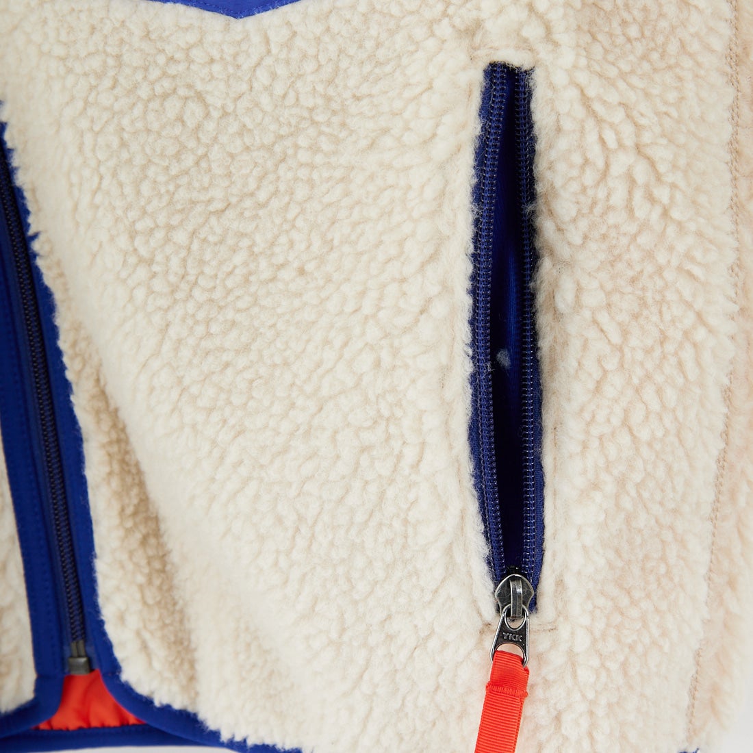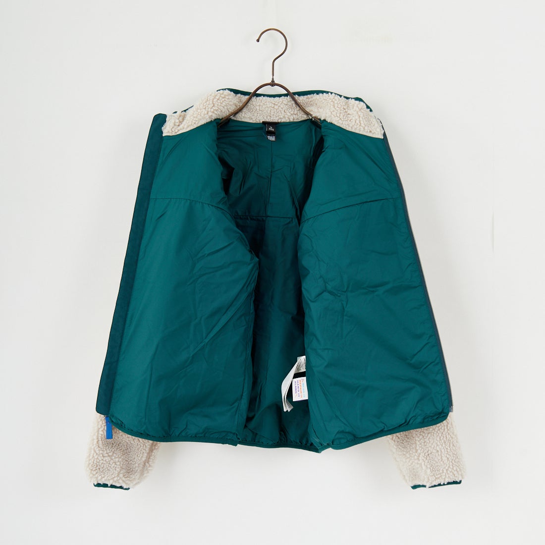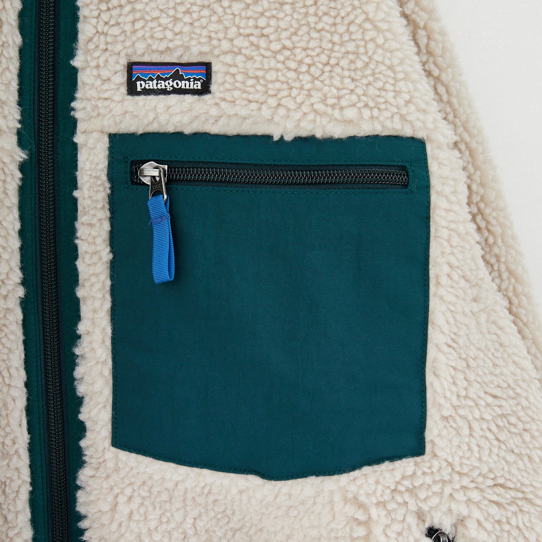 ソフトなリサイクル・ポリエステル100%の6ミリ厚パイル・フリースを使用した、防風性と保温性を提供するキッズ用のレトロX・ジャケットは、リサイクル・ポリエステル100%のタフタの裏地付き。パタゴニアの伝統を受け継ぐこのスタイルを大人用にも子供用にも、プラスチック汚染の危機にさらされている沿岸部の共同体から供給された、オーシャンサイクルの認証済みのリプリーブ・リサイクル・ポリエステル100%でクリーンアップ。フェアトレード・サーティファイドの工場で製造されています。