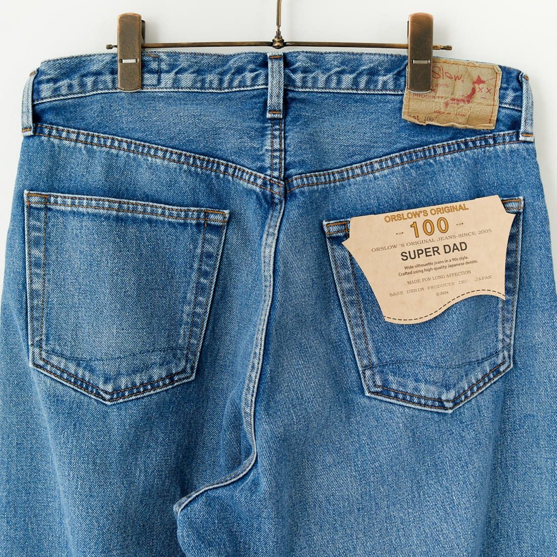 orSlow[オアスロウ]のスーパーダッドデニムパンツ。アメリカの田舎のお父さんが穿いていそうなパンツということで名付けられたダッドパンツ。さらにゆったりとワイドシルエットに仕上げたスーパーダッドパンツです。オーソドックスな5ポケットタイプのデニムのデザインで、フロントはジッパーフライ仕様。股上はやや深めとなっています。リラックス感のあるシルエットで履きやすく、裾に向かってテーパードを少しきかせたワイドなシルエットが特徴的。流行に左右されず、経年変化を楽しみながら長くご愛用いただける一本です。