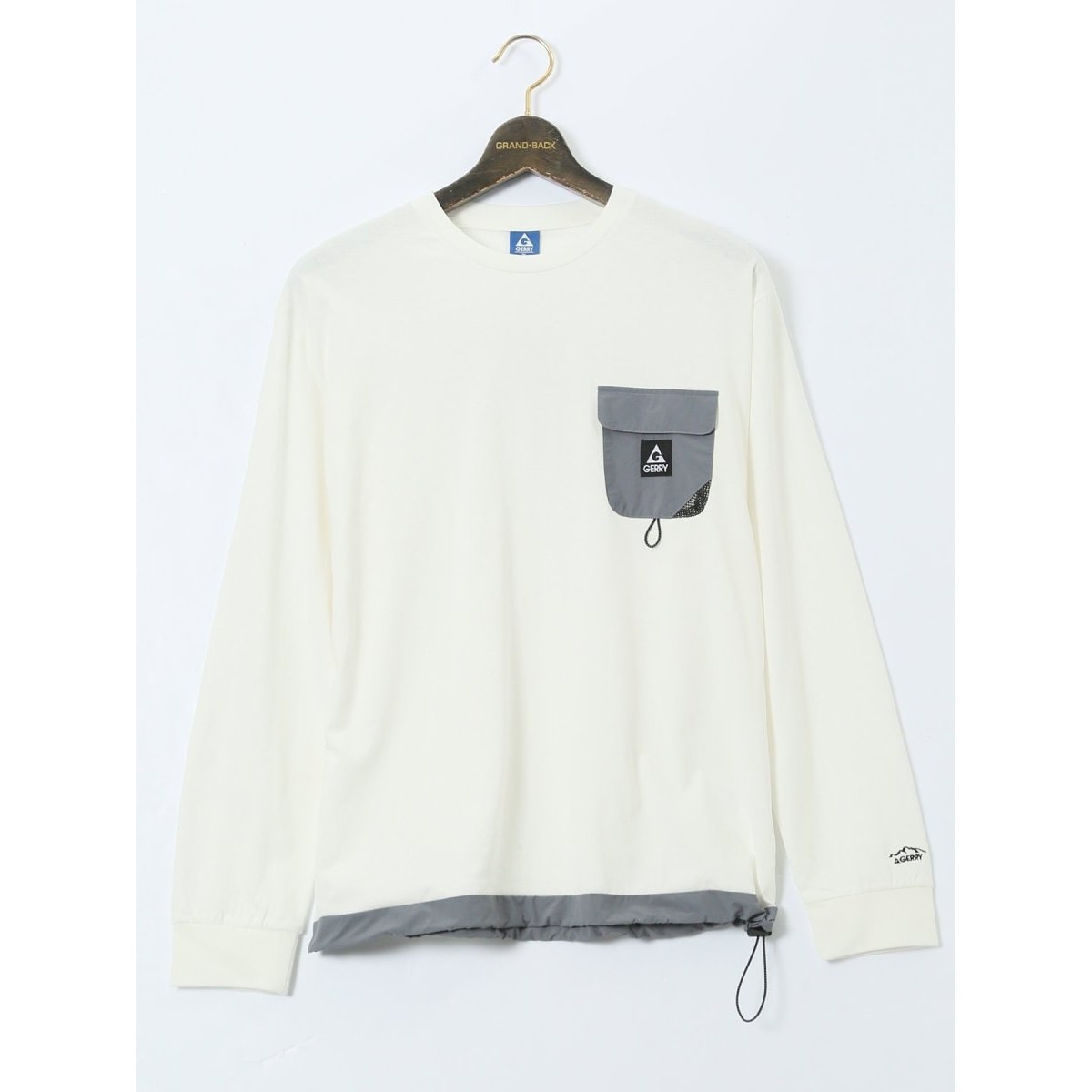 コーディネートの主役アイテムにぴったりな、クルーネックの長袖Tシャツです。ナイロン素材で切り替えた裾と左胸ポケット、GERRYロゴ入りのピス、裾部分のドローコード、衿・袖口のリブパーツがポイント。タウンユースはもちろんキャンプやトレッキング等のアウトドアシーンでも重宝します。