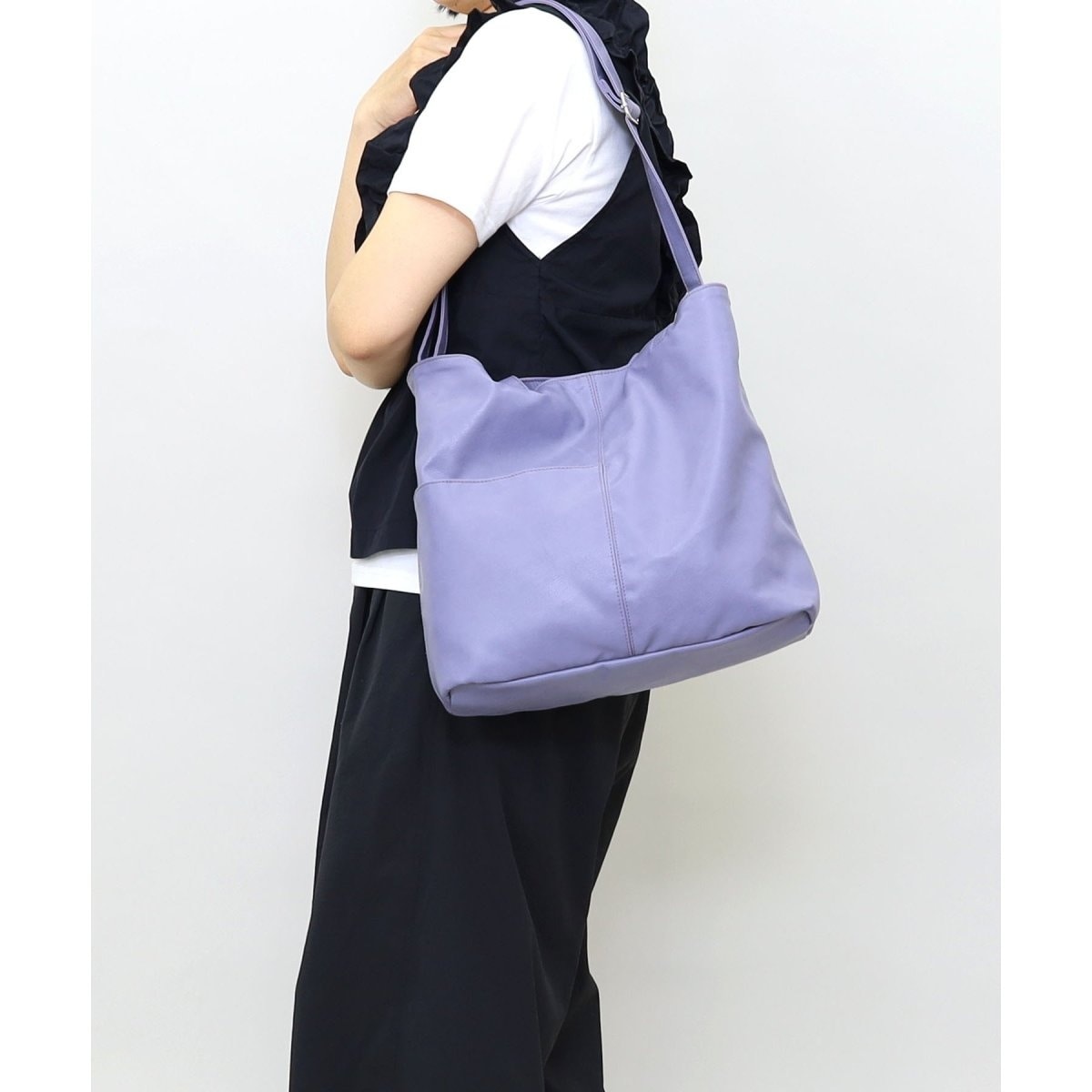 くたっとした柔らかいフェイクレザーを使用した大き目トートバッグです。