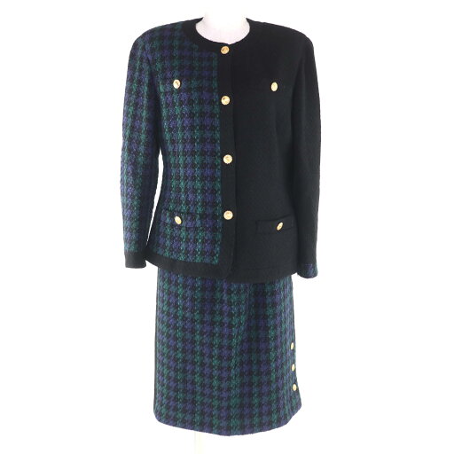 美品 CHANEL シャネル シルク ビンテージ黒 ひざ丈プリーツスカート 34