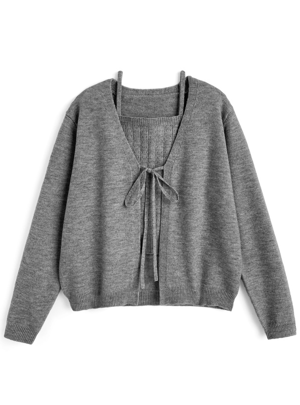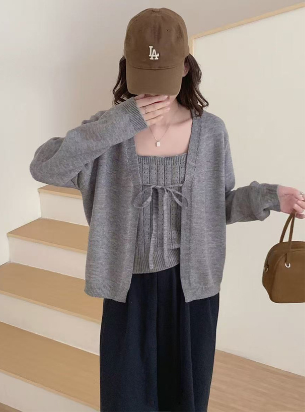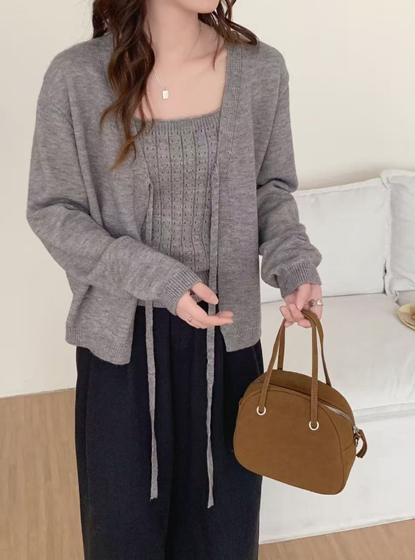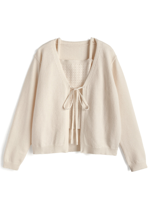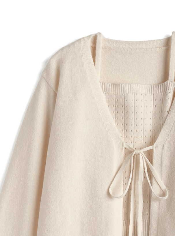 透かし編みニットショート丈トップス×キャミソールアンサンブル[an1311]