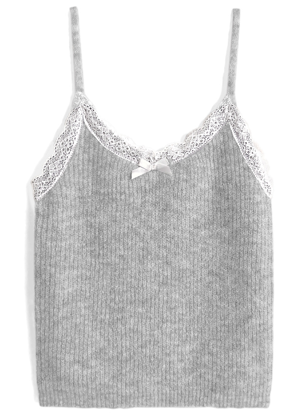 キャミソールは胸元のレースやリボンモチーフがガーリーなアクセント。