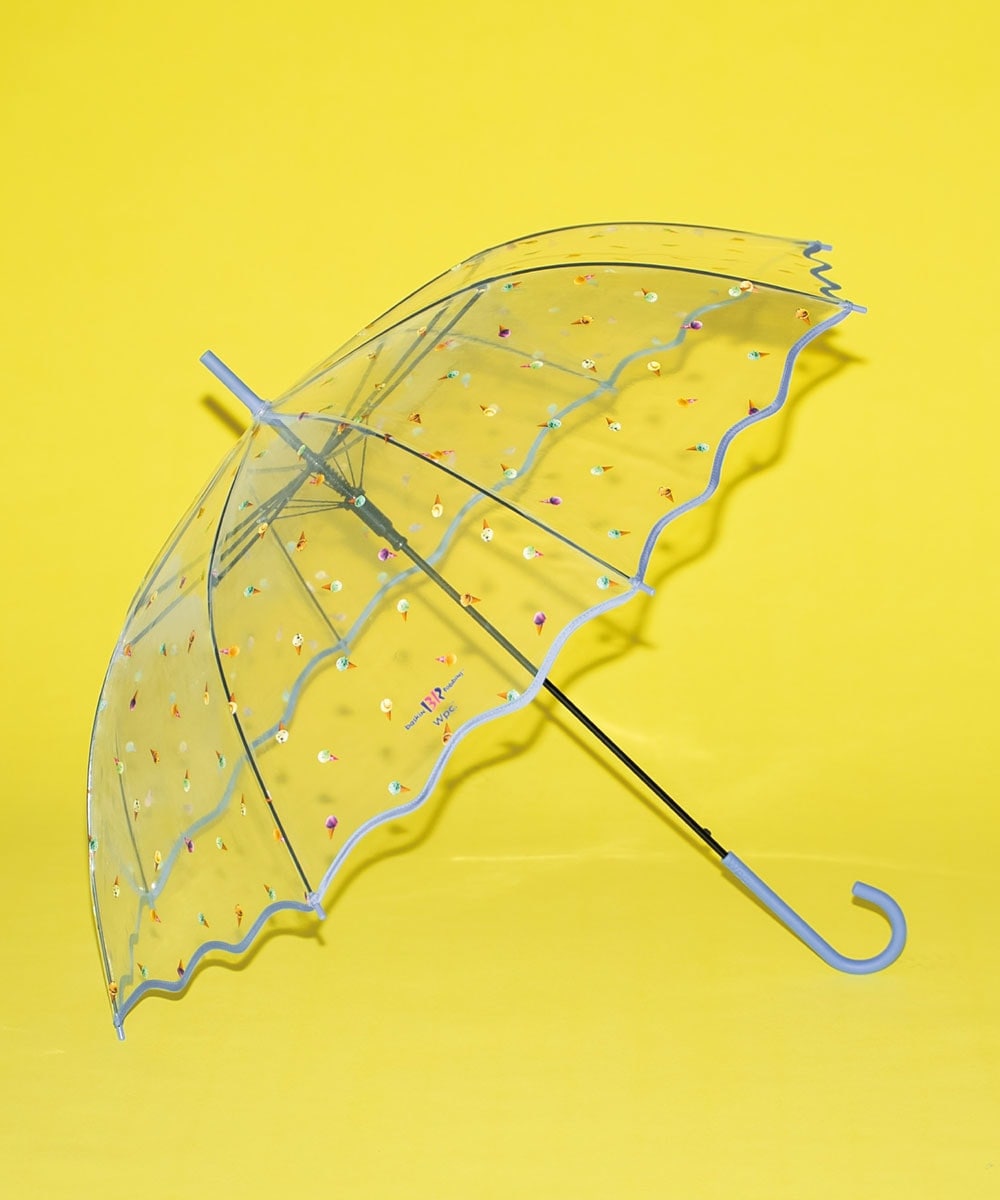 アイスクリーム柄が傘いっぱいに散りばめられた、見ているだけでワクワクするビニール傘です。