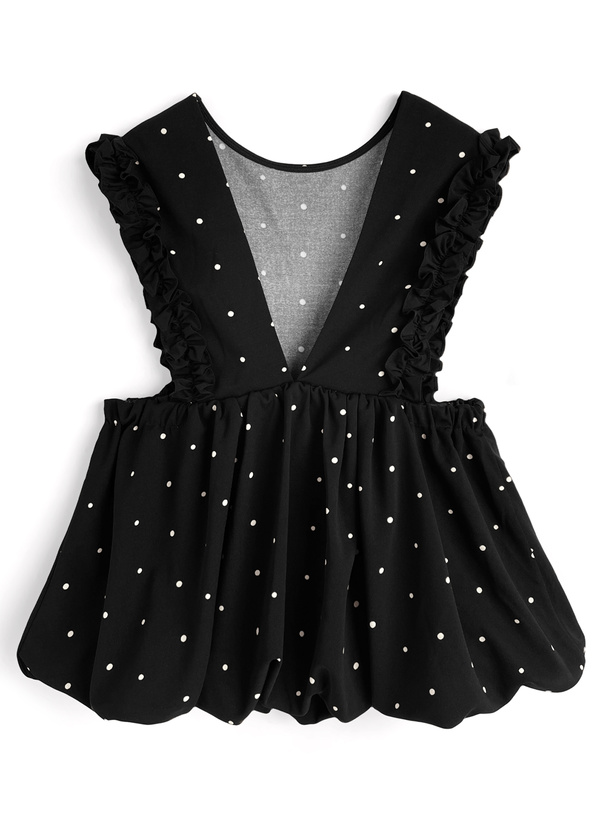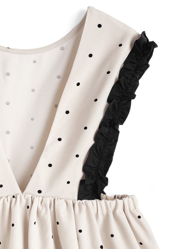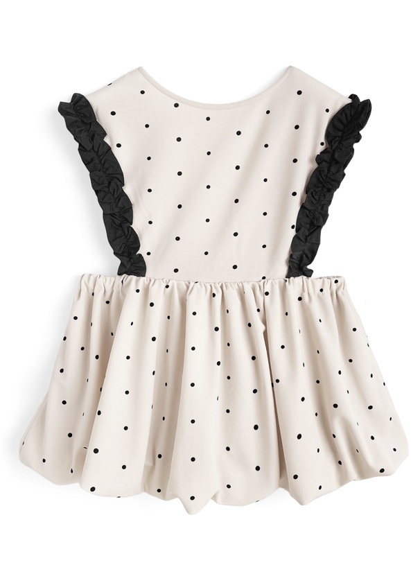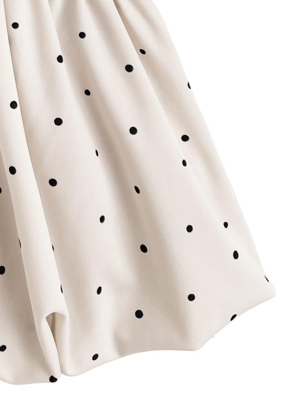 クラシカルな水玉柄生地で仕立てたフェミニンムード漂うアイテム。