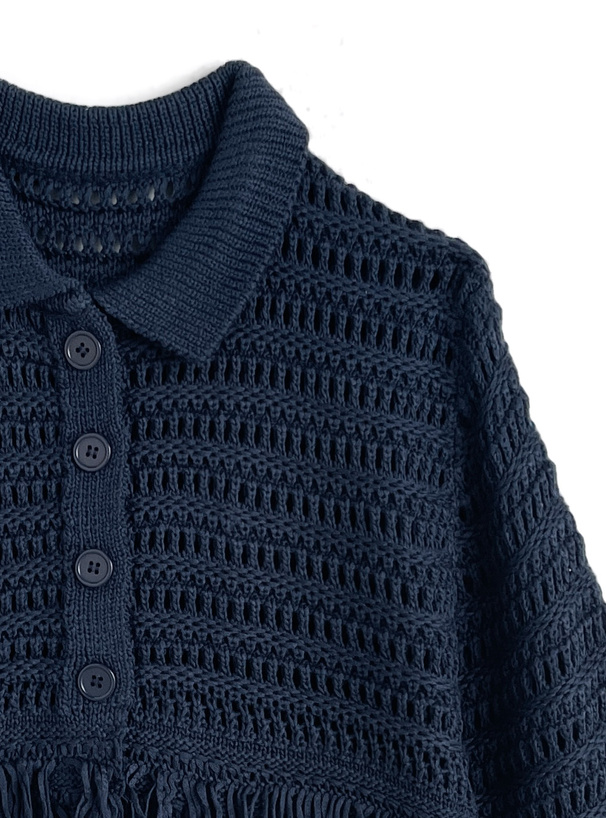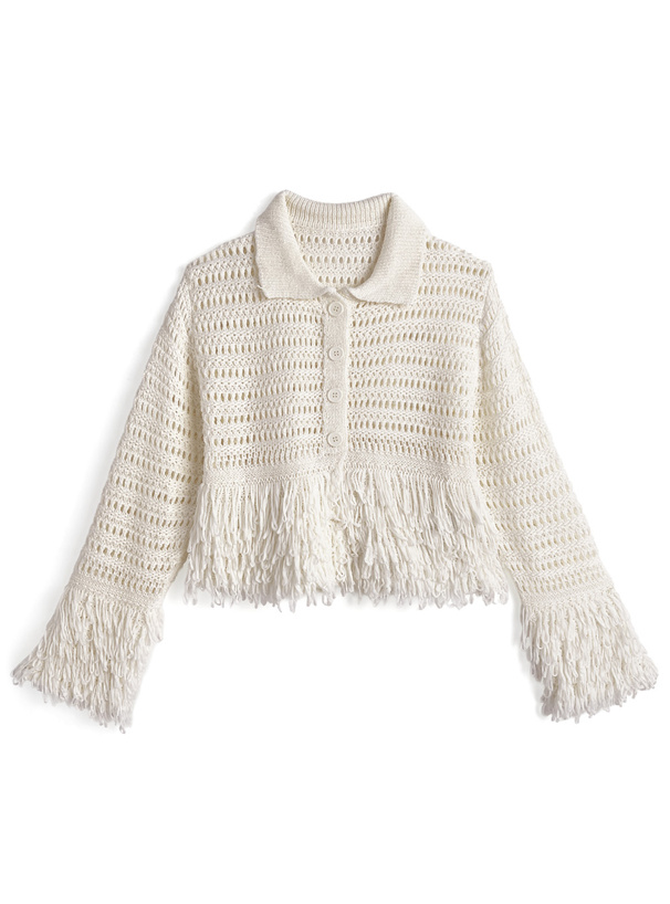 軽やかな透かし編みデザインが印象的なニットカーディガン。