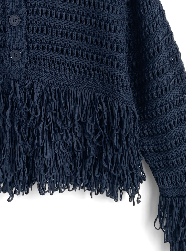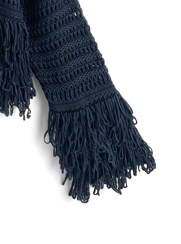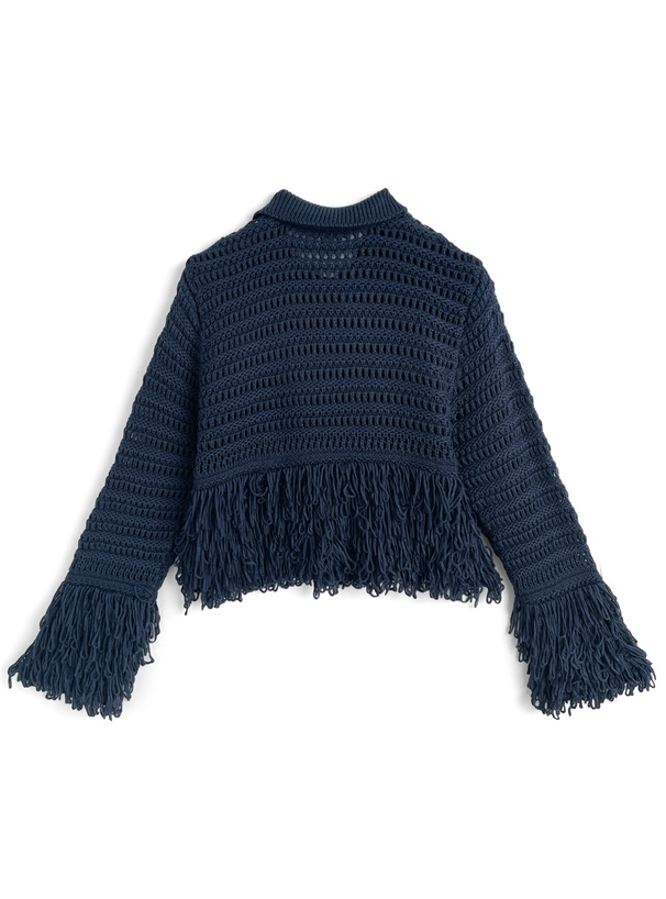 袖と裾にあしらったボリューミーなフリンジが動きのあるシルエットを演出。
