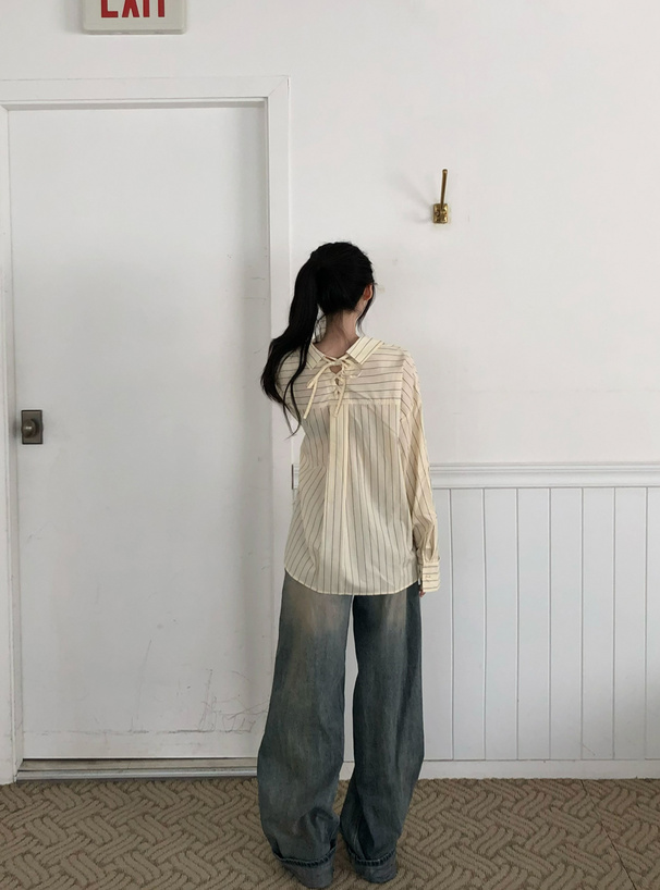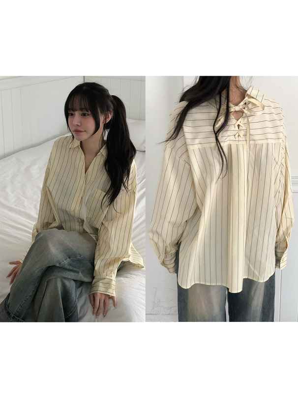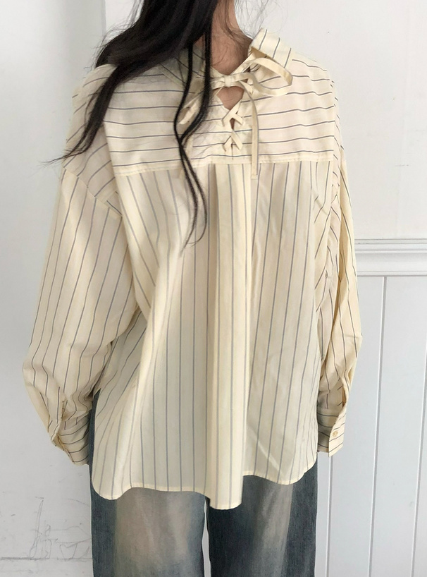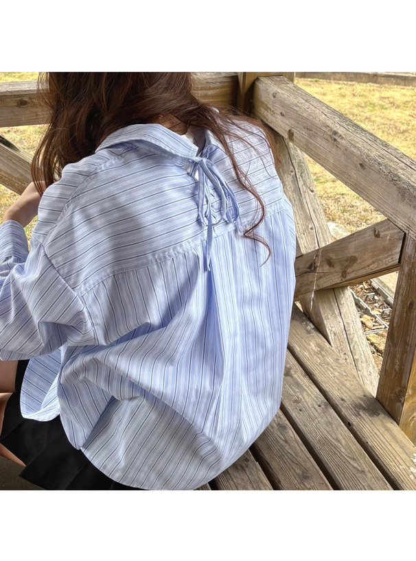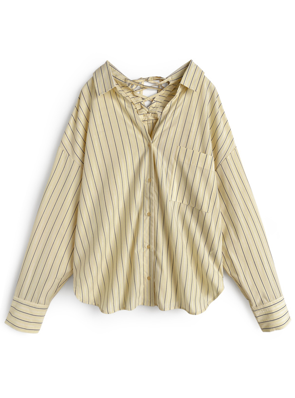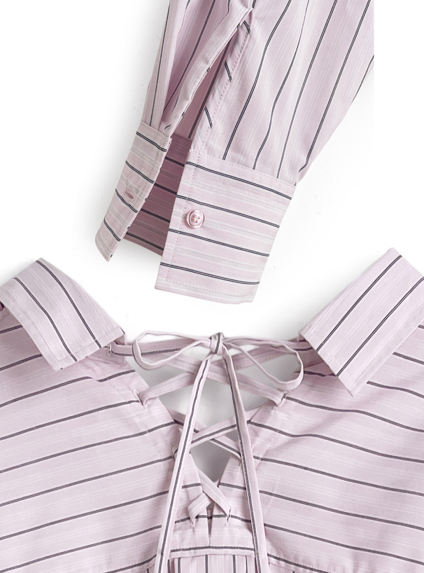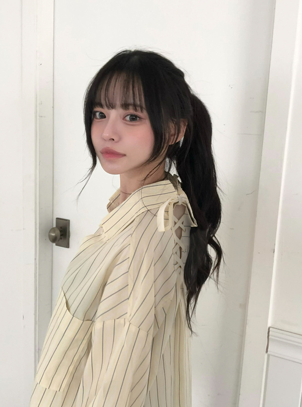 バックネックにはレースアップリボンをあしらい、後ろ姿にまでこだわったアイテム。
