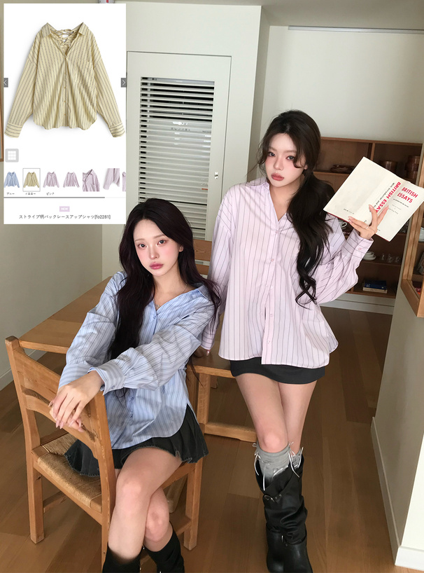 爽やかな雰囲気のマルチストライプ柄生地で仕立てたシャツ。