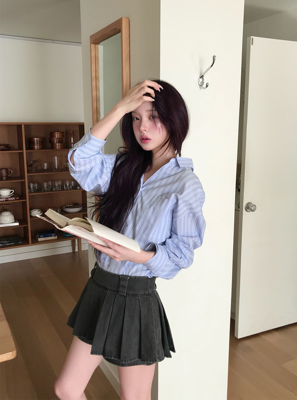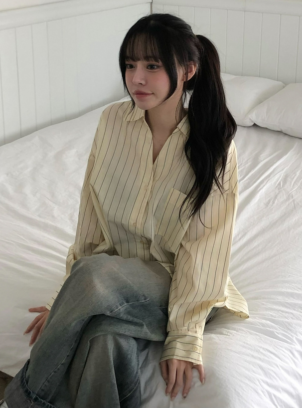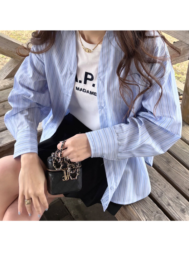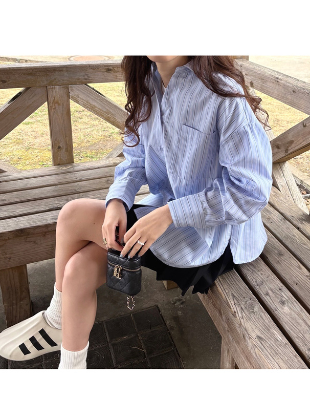 さらっとしたシャツ生地なので、トップスとしてもインナーの上から軽く羽織るのも◎。