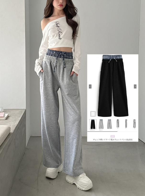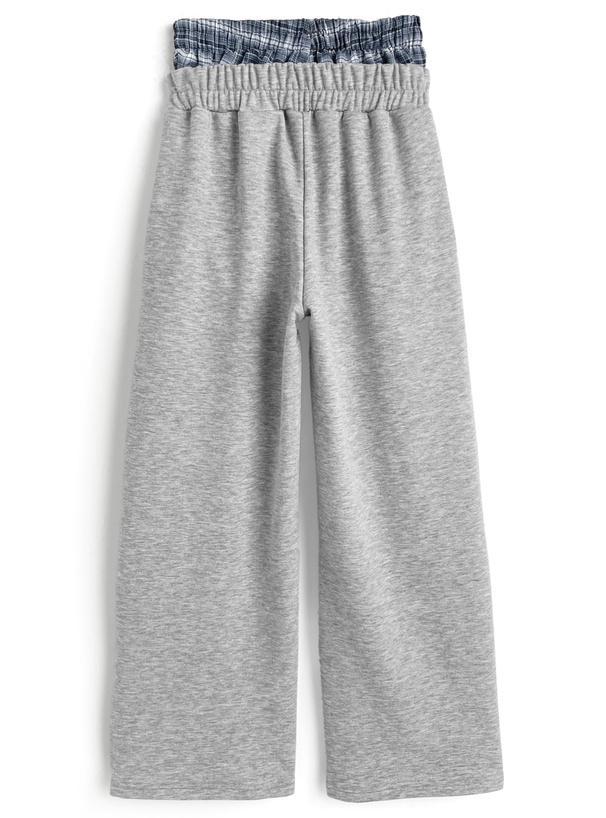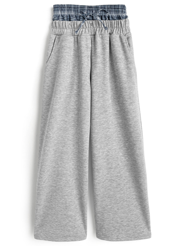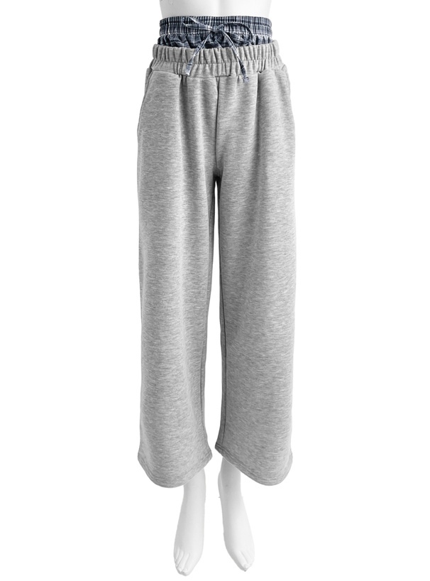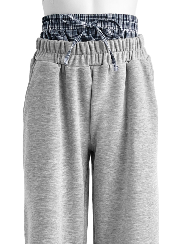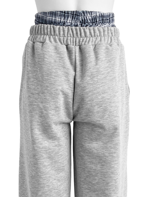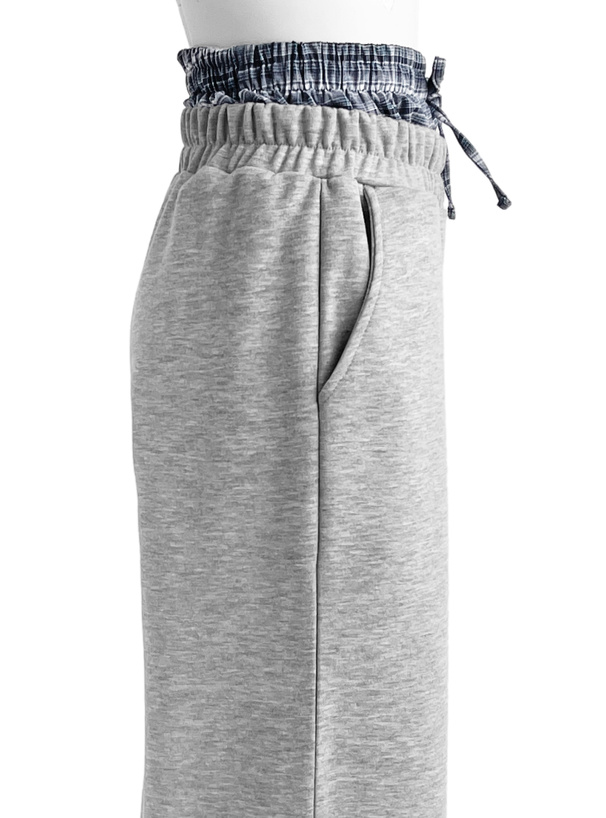 シンプルなスウェットパンツからチェック柄生地がチラ見えするデザイン。