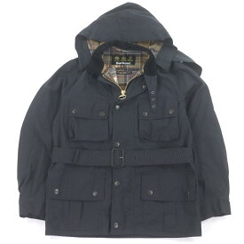 美品▼Barbour バブアー SOLWAY コットン コットン 襟コーデュロイ ベルト付き ダブルジップアップ ワックスジャケット ネイビー 36 ブルガリア製 正規品 メンズ【中古】