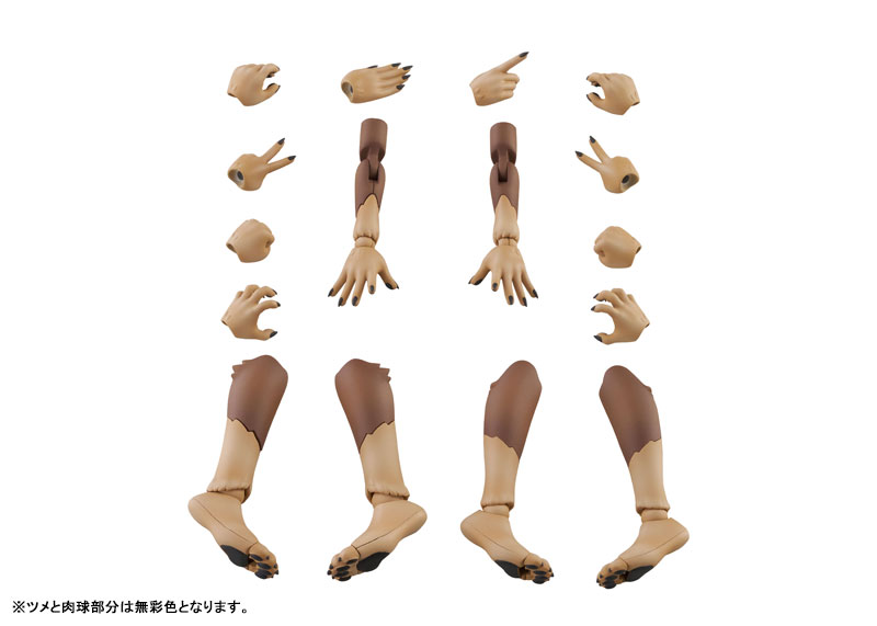 アーム&レッグパーツセットは、新造形の中ケモアーム、中ケモ用レッグ、高ケモ用レッグがセットになっており、ベースキットの腕部と脚部をお好みで交換することで、従来とは違った雰囲気のケモノが再現可能です。